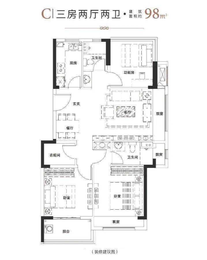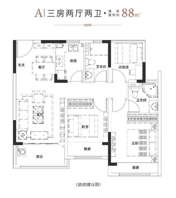 建筑面积:88平米(三房两厅两卫)98平米(三室两厅两卫)