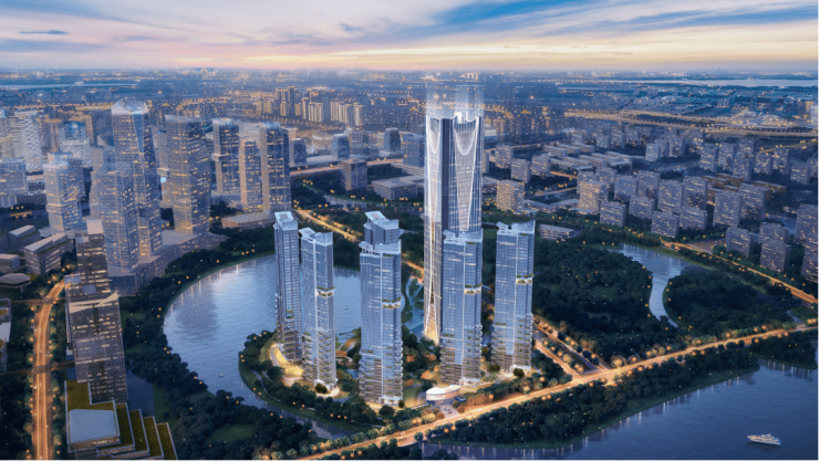 丰隆海纹中心是由新加坡城市发展集团(CDL)在苏州高铁新城打造的超高层地标综合体项目,位于相城区高铁新城水景路西、富翔路南核心区域。 项目总占地面积约51691㎡,总建筑面积约39万㎡,容积率5.0,规划包含一栋250米超高层建筑、1栋商办楼和6栋44-45层高端住宅,总投资约30亿元人民币,预计2029年初竣工。