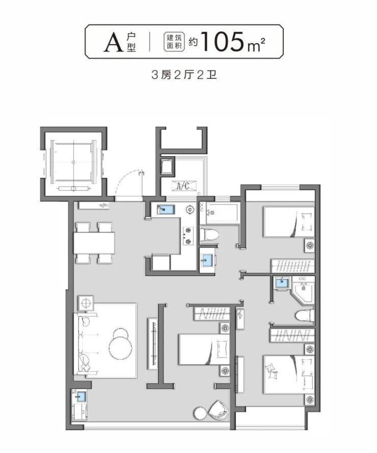 项目主力户型为105㎡三房、138㎡三房、149㎡三房和151㎡四房,层高3.1米,采用两梯四户设计,南北通透。目前均价约23000-25000元/㎡,物业由苏州华新国际物业公司负责,物业费2.47元/㎡/月,预计2024年12月底毛坯交付