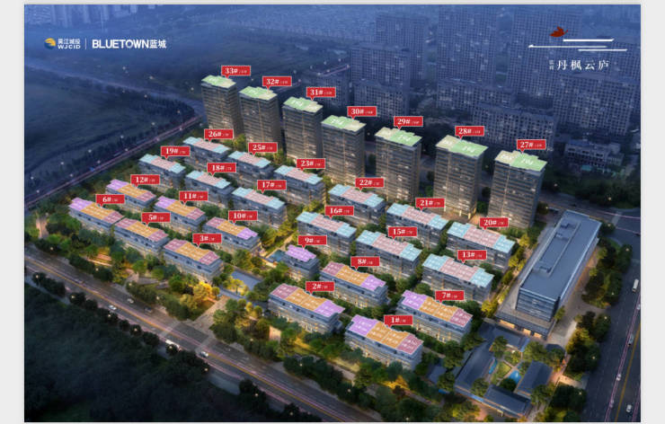 绿城丹枫云庐位于苏州市吴江区庞杨路南、秋枫街西(太湖新城核心区),由蓝城集团与吴江城投联合开发,是苏州桃花源主创团队十年匠心回归之作。项目占地6.92万㎡,容积率1.6,总建筑面积17.34万㎡,绿化率35%,规划30栋住宅(11栋5层叠墅、12栋7层叠墅、7栋16-17层小高层),总户数449户,物业由绿城服务负责