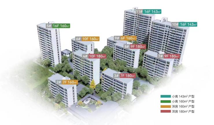 户型面积:小高层143m²洋房160m²洋房180㎡