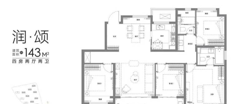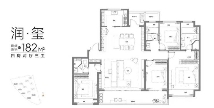 182㎡四居:总价701万-727万,南北通透+双主卧套房设计,得房率82%