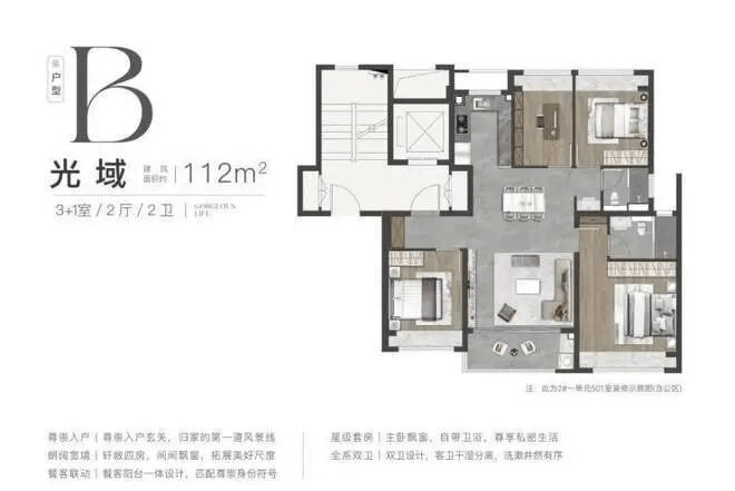 户型面积(㎡)格局总价区间(万)核心卖点91㎡913室2厅2卫292-330双卫设计,南向三面宽,刚需首改首选112㎡1124室2厅2卫360-410四房功能齐全,LDKB一体化客厅128㎡1284室2厅2卫430-500独立家政间,南北双阳台,改善终极之选