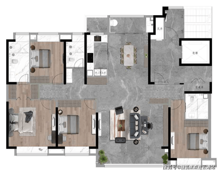 最令人眼前一亮的,当属南向双套房设计,主人房自带独立卫浴、衣帽间、收纳空间的同时,还配置了大飘窗;玄关处套房则可作为老人房使用,生活互不干扰。