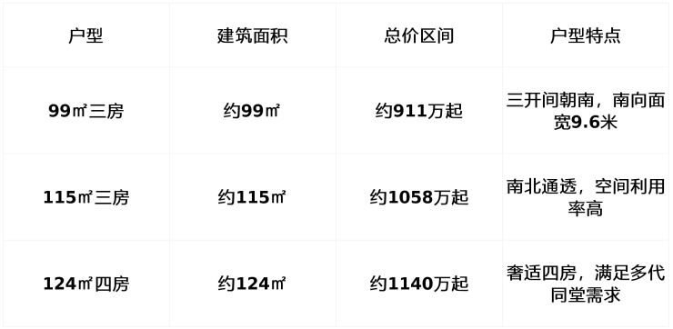 目前项目已进入收官阶段, 剩余房源多为高性价比楼层,可直接认购无需摇号。主力户型包括: