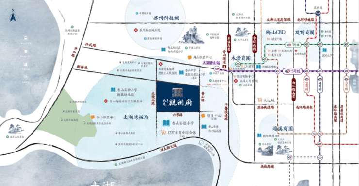 区域内高新产业、5A景区、太湖中心mall(现已开业)大型商业、品质教育集萃,城市资源要素承载之地,地脉价值不彰自显。