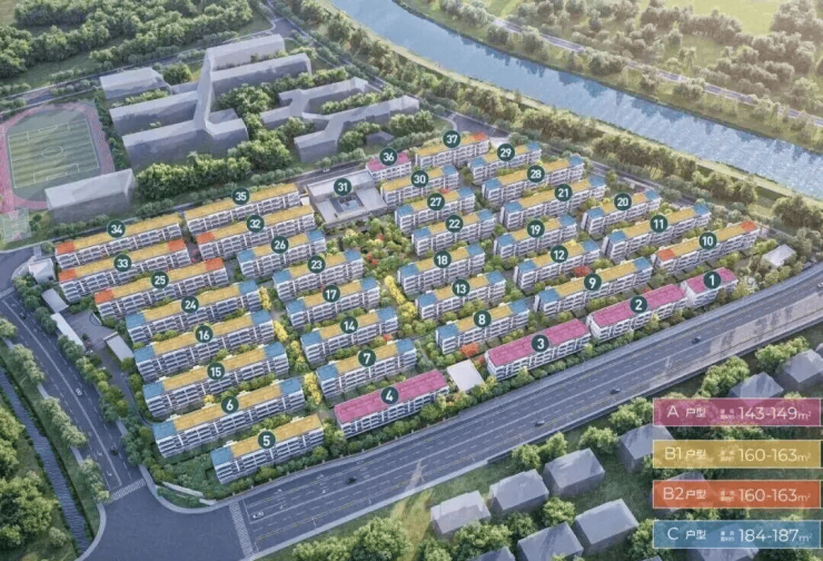 项目总建面约15万平方米,容积率仅1.2,绿化率约30%,规划36幢4层叠墅,共492户,无中叠设计,仅设上下双叠,实现“一户一院、有天有地”的改善型居住理想。