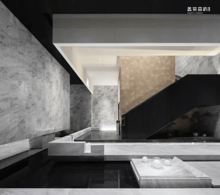 中央立体水庭以层叠水幕为脉,编织垂直绿化的立体绿植矩阵,将森林岛屿的谧境意境融于建筑肌理。多维高差叠景自地面抬升,形成 “仰观飞瀑流翠、俯赏溪涧清涟” 的沉浸式观景体验,步移景异间,让自然的韵律在空间中层层铺展。