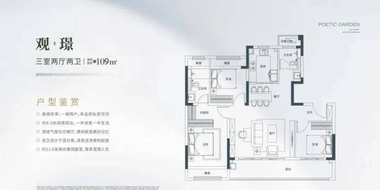 项目匠心规制建面约89㎡(高层)、99㎡(高层)、99㎡(洋房)、109㎡ (洋房)四种不同面积产品,全部多功能三居的规划。兼顾两人世界、三口之家、康养改善等不同家庭结构人群的需求。