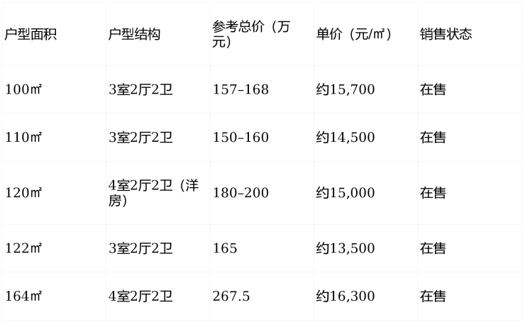得房率:高层约88%–90%,洋房高达99%,空间利用率业内罕见。