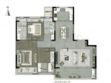 高层:105-113㎡三房两卫(毛坯,横厅设计+主卧套房,单价约9000元/㎡)