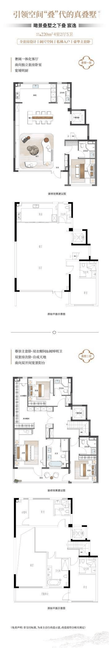 叠墅:3栋5+1F,下叠220㎡、中叠/上叠260㎡,共45套(毛坯交付)
