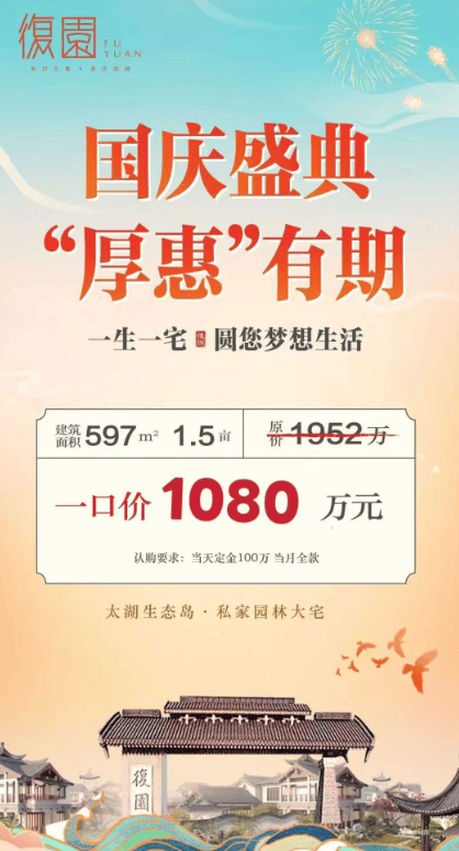 备案1948万,现特价直降868万,仅1080万!毛坯交付可私人定制!