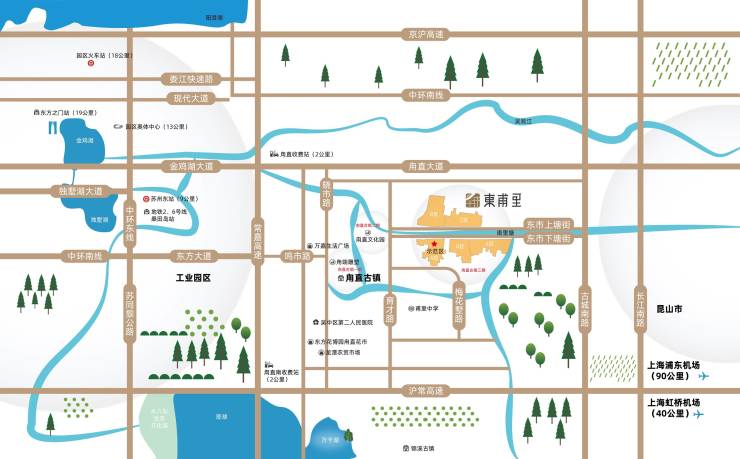 距苏州工业园区15min车程,甪直南/甪直高速口2公里,上海虹桥机场40公里