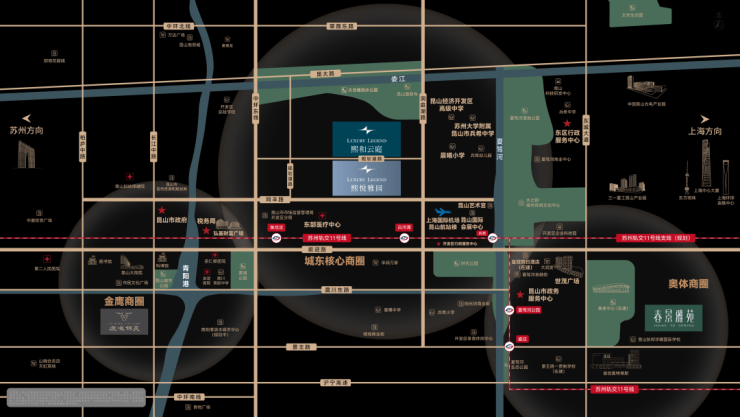 占据昆山开发区正核位置,聚合全维优质资源,执领繁华万象,政务、交通、繁华、生态、文体、健康、教育七大城市级地标群,赋予生活更多丰盈体验。