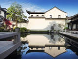 项目内宋境园林:约6000㎡实景示范区,含"行舟江上"、"瑞鹤天池"等主题景观