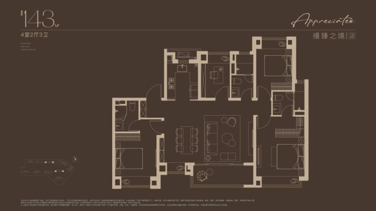产品纯粹性:全部规划105-198㎡的3-4房大平层,确保业主圈层纯粹性