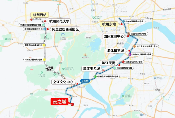 交通:作为在建地铁12号线周九路站上盖项目,未来可实现便捷轨道交通出行。从周九路站出发,可乘地铁6号线通达之江文化中心、滨江区,未来还可通过12号线直达未来科技城核心。