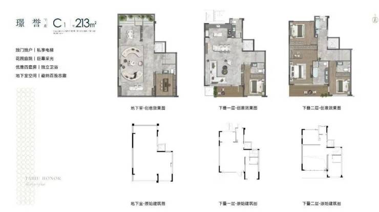 ·叠加——上叠 建面约198㎡、下叠 建面约213㎡;