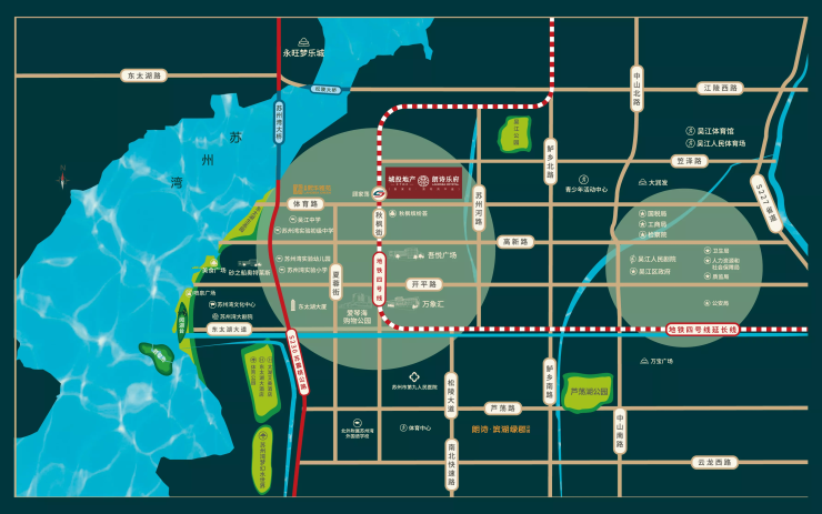 步行650米(约8分钟)地铁4号线顾家荡站,3站达苏州湾文化中心,5站直达吴江人民广场。