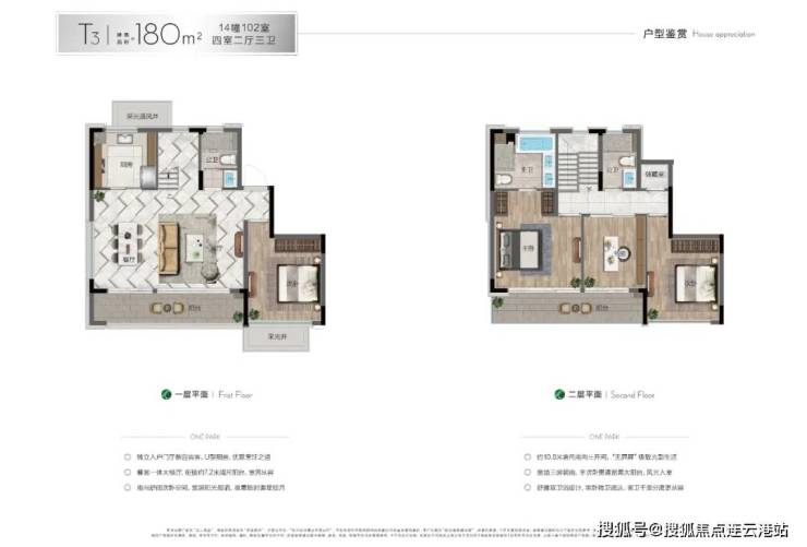 下叠主力户型约180㎡四房三卫,大面积落地玻璃,户型窗墙比超60%,通透敞亮;每户均带南向庭院(约50-60㎡,部分可达100㎡),并创意性做了地下空间。