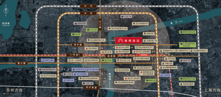 位于昆山城中核心,紧邻娄江、前进路、同丰路三大城市动脉,享有“璀璨三轴”发展红利;