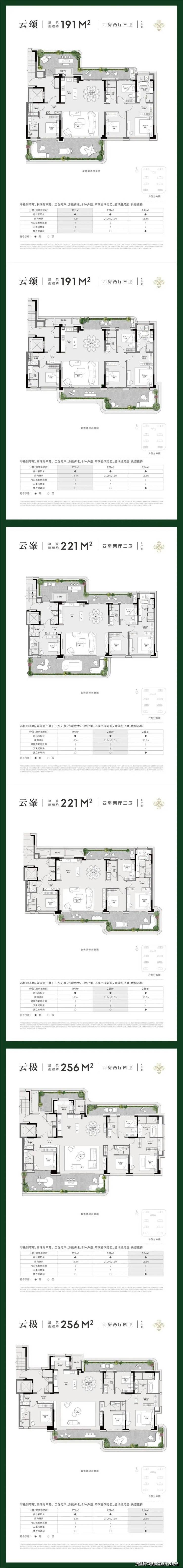 主力户型:建面191-256㎡四代生态大平层