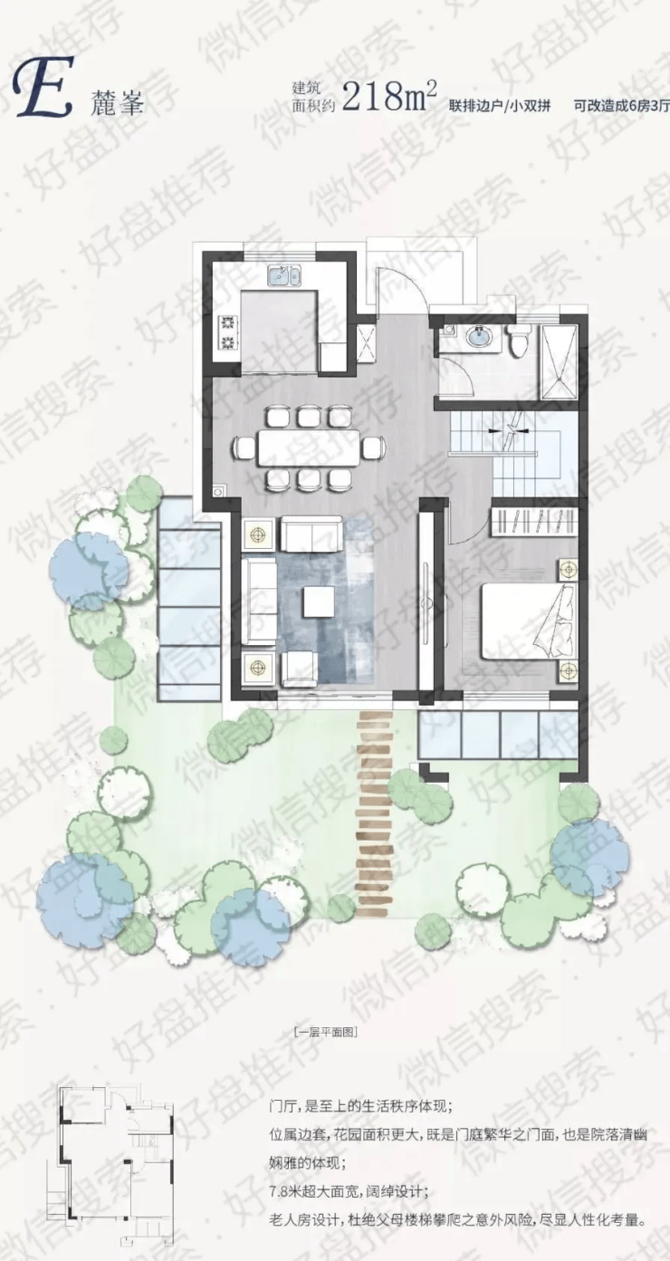 空间设计:高层户型全明通透,多开间朝南,得房率达83.6%;别墅赠送20-80㎡花园,地下室层高5米,可改造为多功能空间。