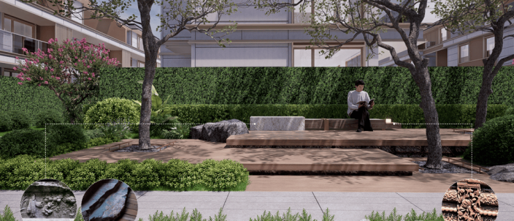 如果说建筑是居住的骨架,那园林便是让其鲜活的血脉。又见江南院的园林,没有走 "堆景" 的套路,而是以 "小中见大" 的东方智慧,把太湖的山水、苏州园林的意境搬进了社区。