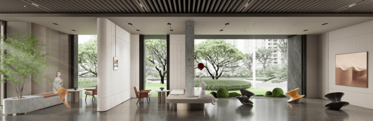无锡奥体潮鸣项目位于经开区干城路与贡湖大道东北侧地块,紧挨奥体中心,直视太湖一线湖景。整体项目的总建设用地面积约10.77万㎡,用地性质为居住。总建筑面积32.05万㎡,其中地上20.52万㎡,地下11.54万㎡。建筑业态包含5/7F多层住宅及21~24F高层住宅,户型面积155~320㎡。该项目采用公建化外立面,造型奢华灵动,弧形线条及玻璃呼应奥体灵动造型,立面运用石材+铝板材料+大面落地玻璃,提升居住体验。