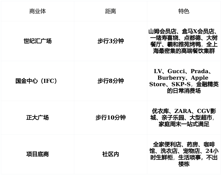 💡 真实反馈 :一位跨境金融高管在笔记中写道:“我住过陆家嘴的公寓,也租过外滩的顶层,但只有在这里, 清晨咖啡配江景,傍晚会议后步行5分钟到山姆囤货,孩子在世纪汇上钢琴课,我下楼就是地铁2号线——这不是生活,是系统级的效率革命 。”