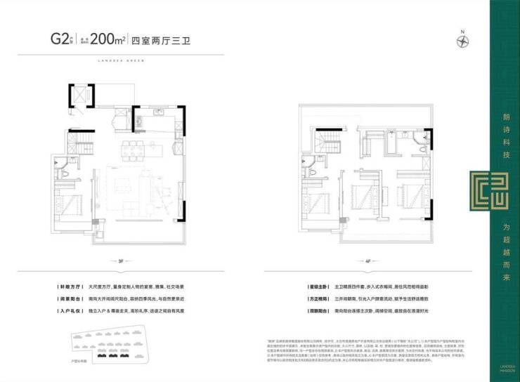 科技系统:采用朗诗“自由方舟”系统,实现四季恒温(18-26℃)、双重空气过滤及湿度控制,提升居住舒适度