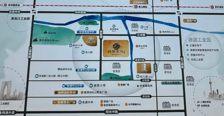 长三角枢纽 :东距上海虹桥约45分钟车程,西接苏州工业园区约30分钟,是“沪苏同城化”桥头堡。