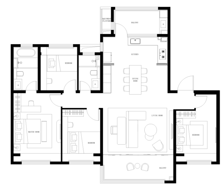 建面约162㎡的南北厅户型,足以对标180㎡以上的大四房,妥妥的“享受型”大平层。