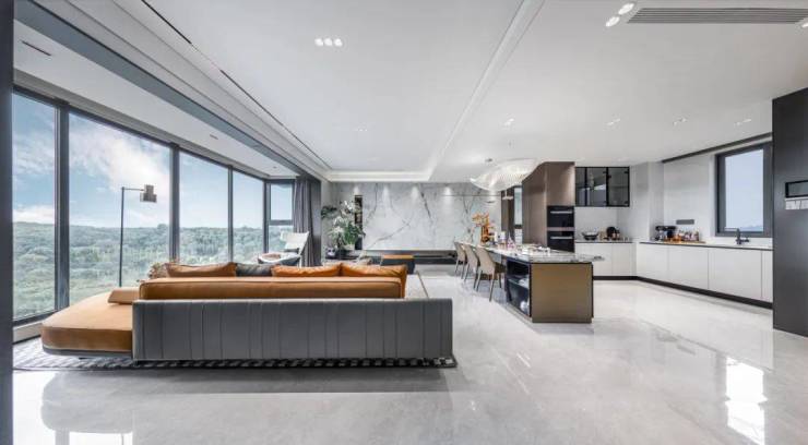 下叠一层全景会客厅约6.7米开间的动区,畅享塔尖人物的尺度感和品质度,将世家风范展现地淋漓尽致。