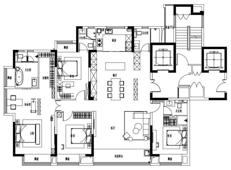 一梯一户与四梯四户结合,主卧套房达10㎡,配备双台盆卫浴及多重收纳系统