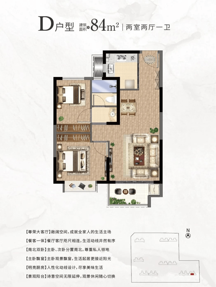 主卧配置:部分户型主卧配备独立卫生间和南向景观飘窗