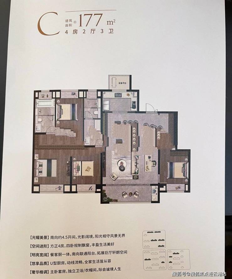 177㎡四居:总价 390-480万,层高3.1米,得房率约82.6%;
