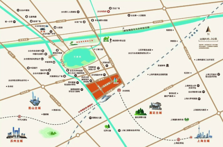 高铁枢纽:紧邻太仓南站(步行约500米),1站直达上海虹桥,30分钟抵达市中心