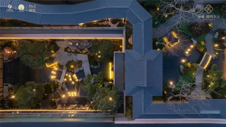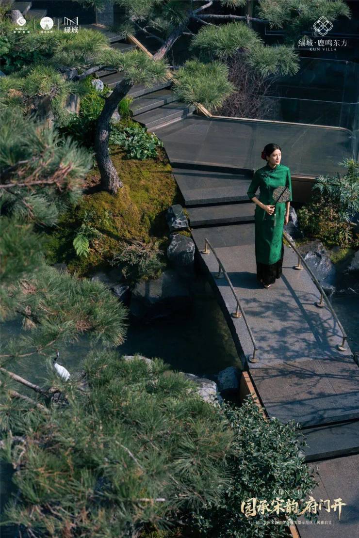 项目通过打造昆山首座下沉式宋风美学庭院,构建起双层洄游动线系统。绿城凭借6米高差的立体庭院布局,塑造出一幅可游可观的现代山水画卷。绿城设计团队取法昆山亭林公园,以自然高差为画布,用画笔把山、水、石、树等元素取用融合,结合池、泉、瀑、溪的立体多维水景系统,勾勒出城市里难得一见的自然式山水立体庭院。