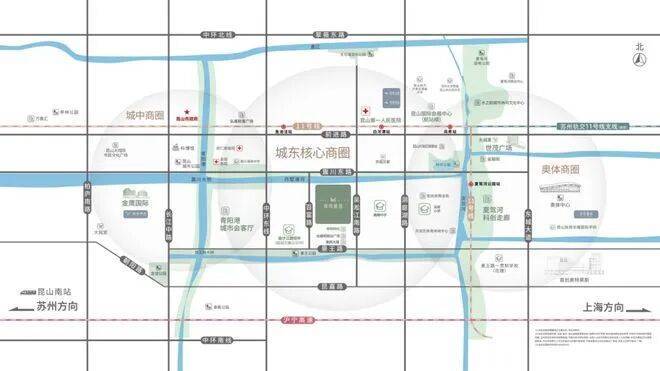 区位优势:毗邻昆山市政府,属城东核心板块,距离苏州轨交11号线白河潭站约800米