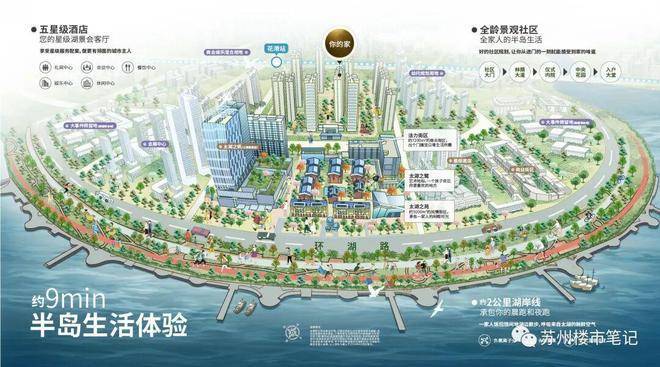 紧邻地铁4号线花港站,一线联通苏州各大主城,9站观前街,10站之内5个大型商场,更有医院等配套,周边市政道路鲈乡北路、半岛路、环湖路即将通车,独家占有绝好的交通资源