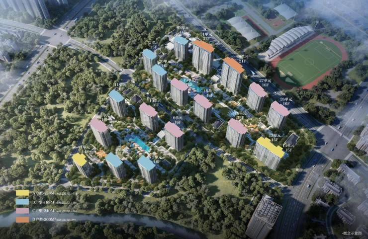 。总建筑面积约44.7万㎡的规划中,住宅占比仅约28.7万㎡,容积率控制在2.0-2.5之间,在寸土寸金的城市核心区实现难得的低密舒居体验