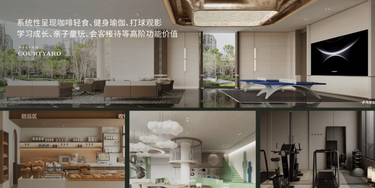 海派下沉式会所:面积达1500㎡,融合瑜伽室、轻食水吧、阅读角、儿童乐园等功能,打造全龄社交空间。