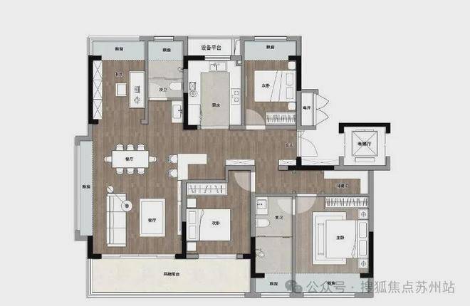 主力户型:116㎡三居(3室2厅2卫)、143㎡四居(4室2厅2卫)