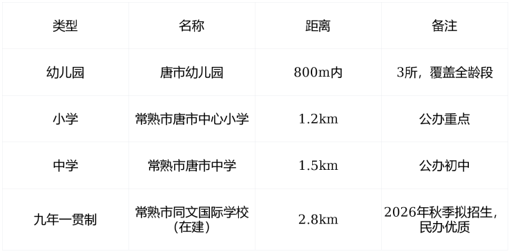 公交 :342路、347路直达唐市站,距项目约627米,可通达常熟市区、苏州相城区