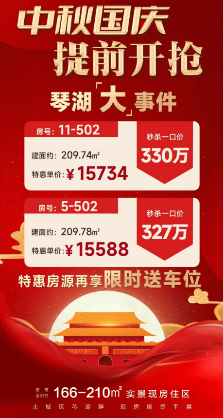 目前项目已进入清盘阶段,剩余房源约50套(含10套177㎡和30套210㎡),特价房源1.5万/㎡起(原价2.6万/㎡),去化率超80%,显示出强劲的市场需求