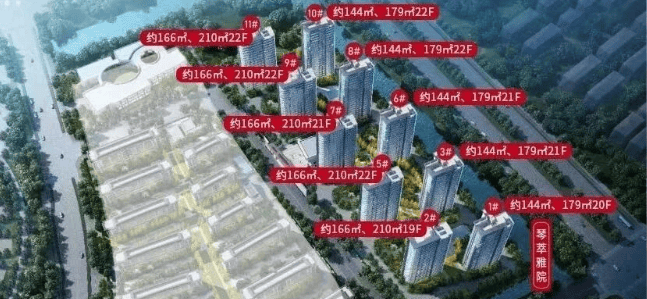 项目西侧楼栋的西边套210㎡户型专为看湖设计,270度视野的L型转角大阳台将琴湖美景尽收眼底。社区以"引湖入境,枕水望月"为设计理念,打造"一环、两轴、三园"的景观体系,通过多元化轴线空间增进邻里互动
