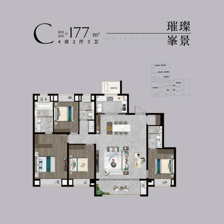 户型特点:南北通透、主卧套房、玄关入户、厨卫全明,满足高端家庭居住需求