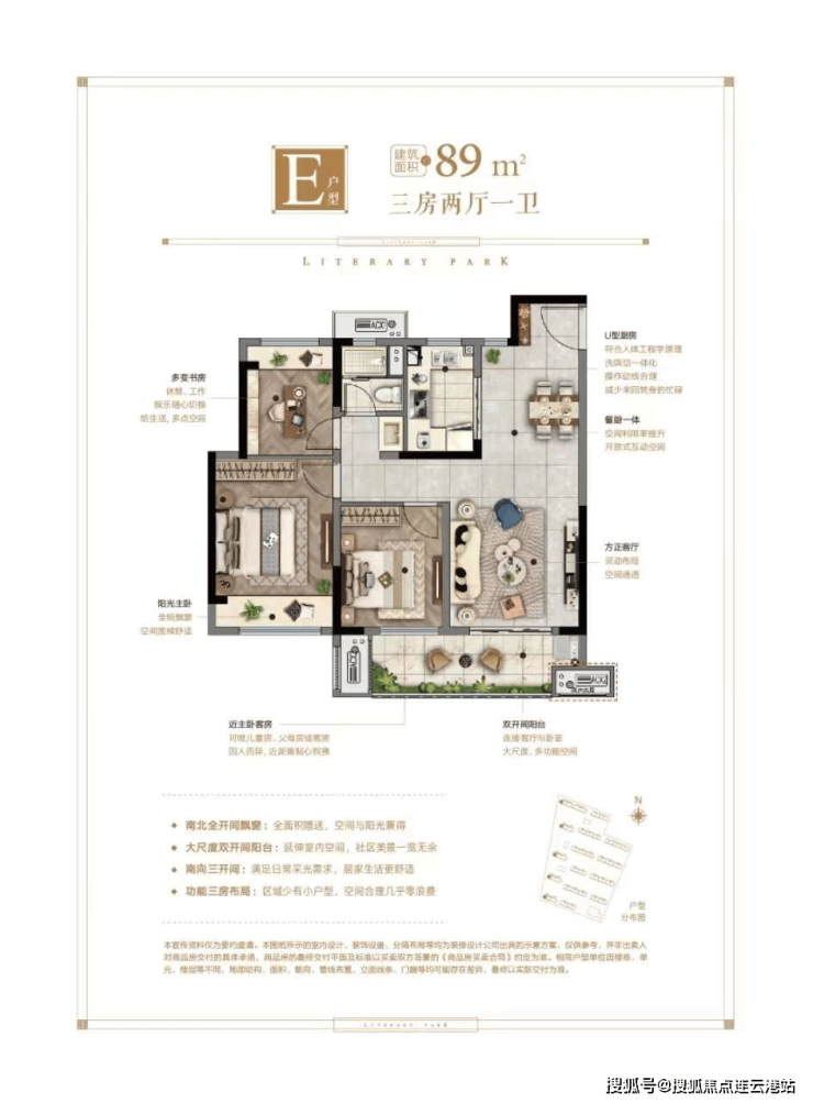 89㎡三室两厅一卫:总价约110.5万/套起,毛坯交付